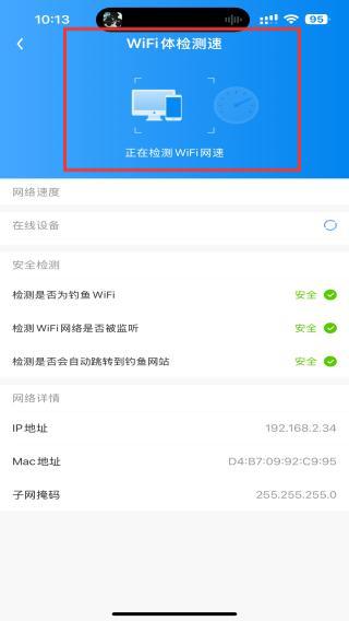 3、點(diǎn)擊后,即可開(kāi)始進(jìn)行安全體驗(yàn)檢測(cè)wifi速度。