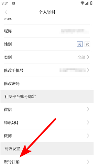 4、在個人資料頁面點擊賬號注銷,按照提示操作即可完成賬號注銷。