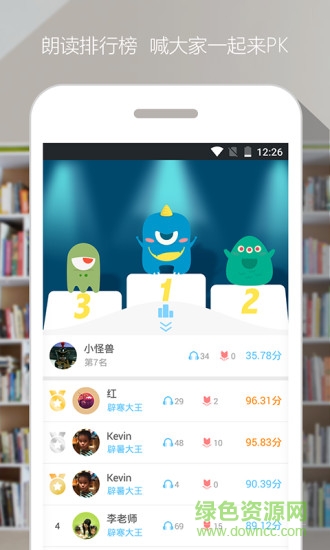 4.全新的錄音體驗,配合訂制的背景音樂,有助于小朋友快速進入朗讀狀態(tài);打分機制的引入使朗讀者成就感倍增;