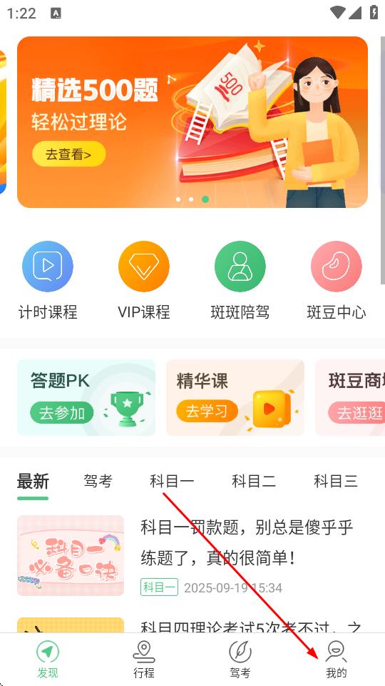 1、打開斑斑駕道,點擊底部導(dǎo)航欄我的選項。