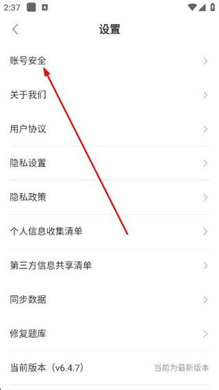 3、進(jìn)入設(shè)置頁面后,點擊上方的賬號安全選項。