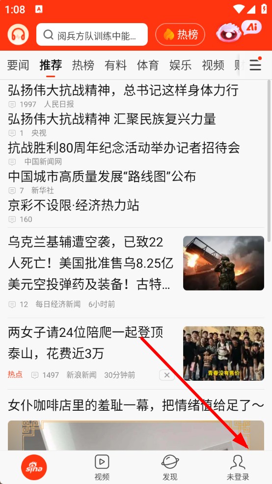 1、打開新浪新聞APP,點擊底部導航欄未登錄,進入個人頁面。