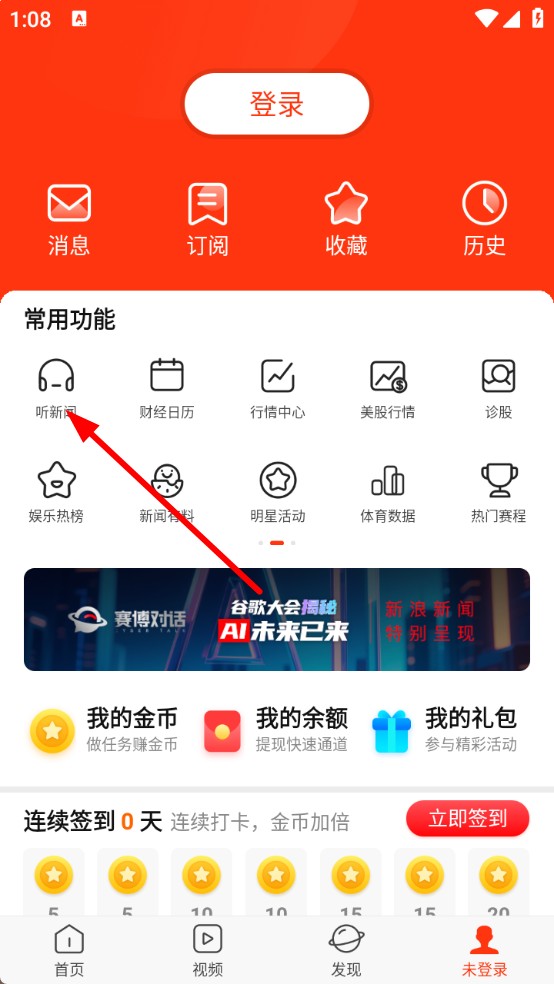 2、在個人頁面常用功能里,點擊聽新聞圖標。