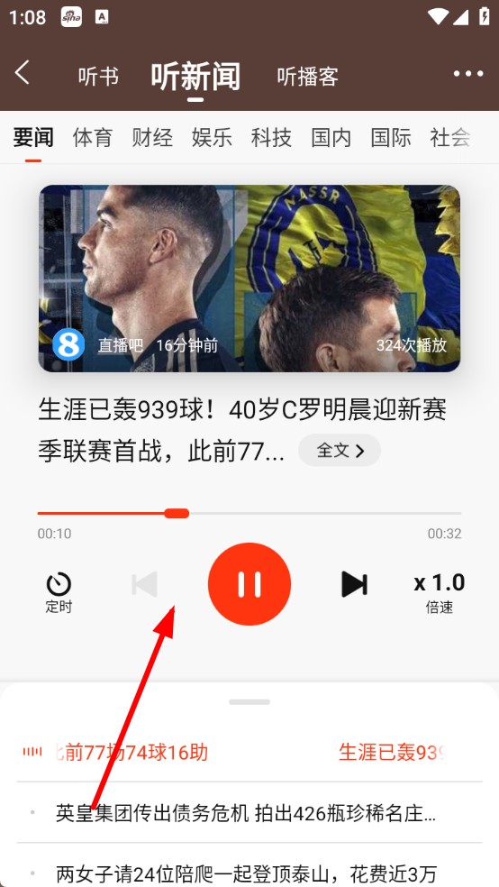 3、進入聽新聞頁面,選擇想聽的新聞內(nèi)容,點擊播放按鈕即可收聽。
