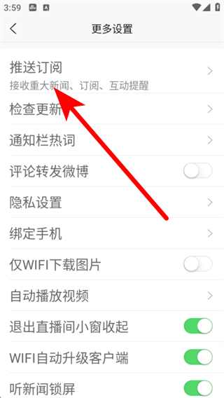 3、在更多設(shè)置界面點擊推送訂閱,進入推送訂閱設(shè)置頁面。