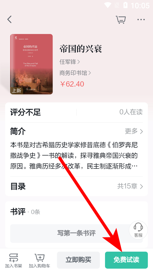 2、在書(shū)籍詳情頁(yè)面,點(diǎn)擊免費(fèi)試讀選項(xiàng),進(jìn)入閱讀界面。