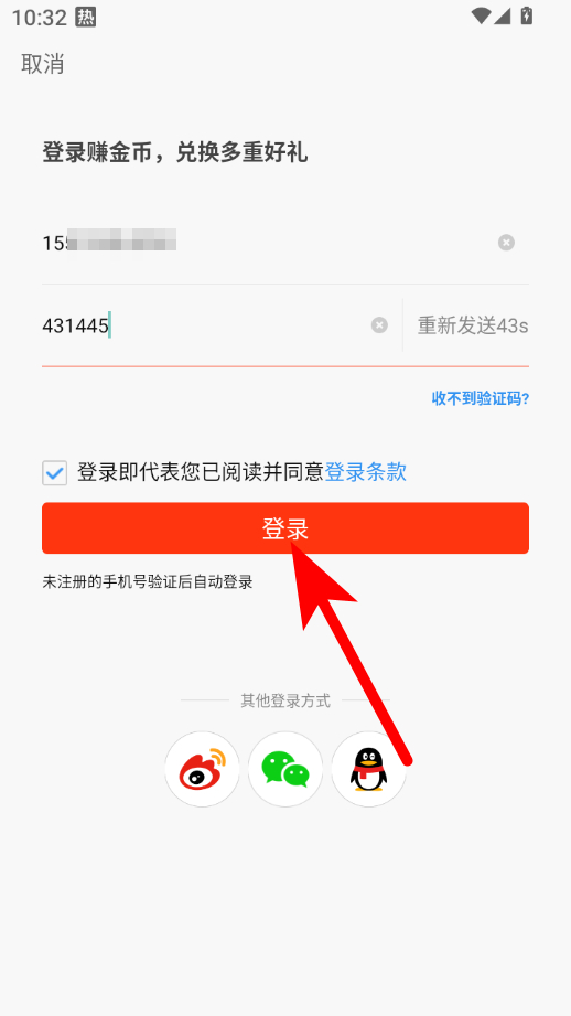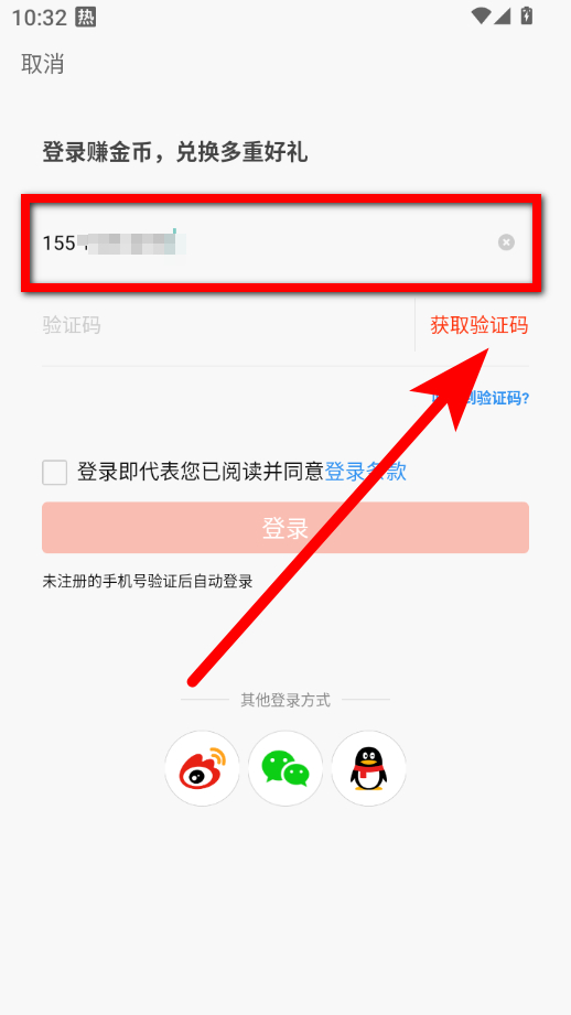 3、在登錄方式選擇頁面,輸入手機(jī)號(hào)后點(diǎn)擊獲取驗(yàn)證碼,輸入收到的驗(yàn)證碼。