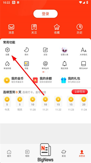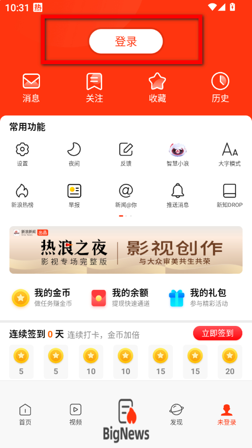1、在新浪新聞首頁,點(diǎn)擊右下角未登錄選項(xiàng),進(jìn)入個(gè)人功能頁面。