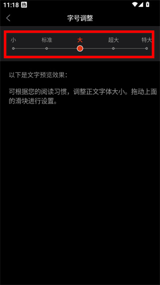 4、在字號(hào)調(diào)整頁面,拖動(dòng)滑塊選擇字號(hào),即可完成字體大小設(shè)置。