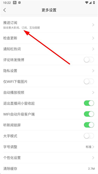 3、在更多設(shè)置頁面,點(diǎn)擊推送訂閱,進(jìn)入推送訂閱頁面。