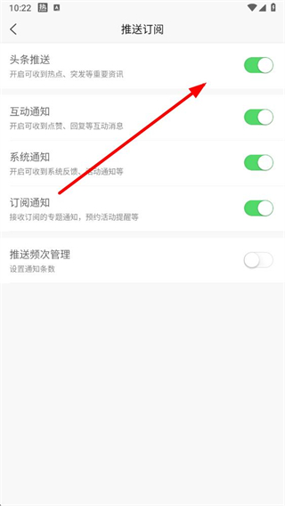 4、在推送訂閱頁面,找到頭條推送選項(xiàng),點(diǎn)擊其右側(cè)的開關(guān)按鈕,即可關(guān)閉推送。