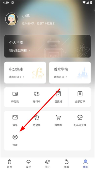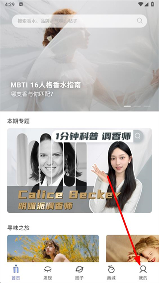 1、打開(kāi)香水時(shí)代app,點(diǎn)擊底部導(dǎo)航欄中的我的選項(xiàng)。