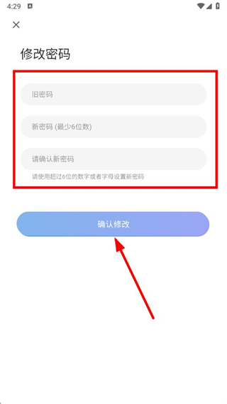 5、在修改密碼頁(yè)面輸入舊密碼、新密碼并確認(rèn)新密碼,最后點(diǎn)擊確認(rèn)修改即可。