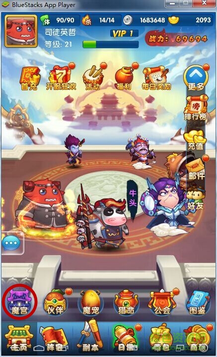 玩家可以在主界面點(diǎn)擊“魔宮”按鈕,進(jìn)入魔宮界面。在魔宮之中,玩家可以對魔王的三大屬性進(jìn)行升級,滿級后,可以突破當(dāng)前位階,在戰(zhàn)力上獲得大幅提升。魔宮升級所需要的材料,可以通過日常戰(zhàn)斗和參與活動等方式獲取。