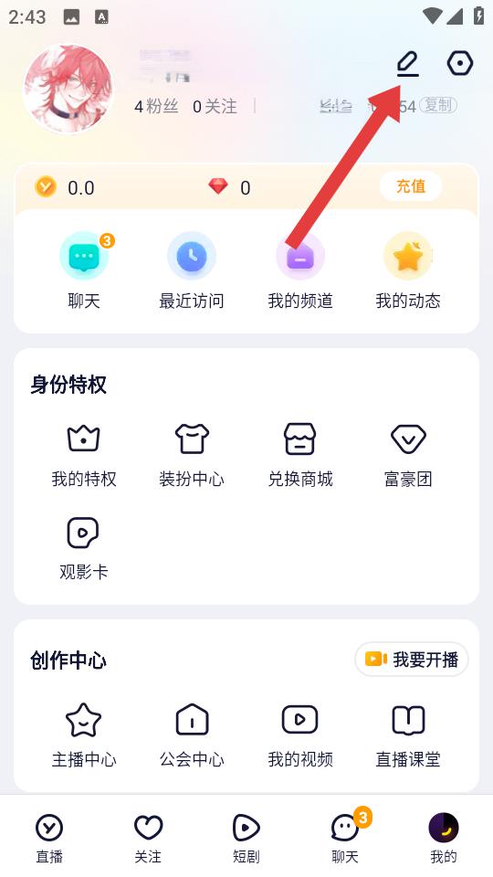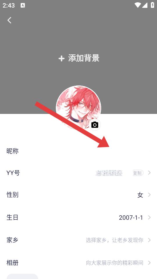 1、進(jìn)入YY我的頁(yè)面后,點(diǎn)擊右上角鉛筆形狀的編輯圖標(biāo),進(jìn)入個(gè)人資料編輯的界面。