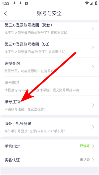 4、進(jìn)入賬號(hào)與安全頁(yè)面后,點(diǎn)擊賬號(hào)注銷選項(xiàng),按照提示完成賬號(hào)注銷操作。