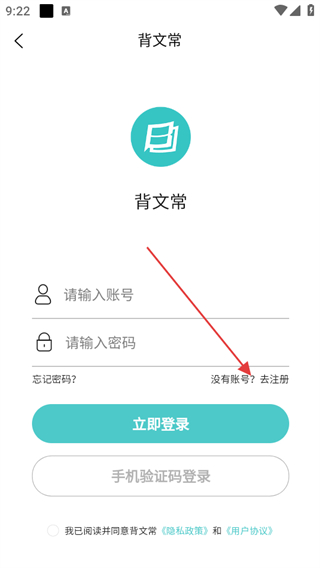 3、在登錄頁面,點擊沒有賬號?去注冊選項,進入注冊頁面。