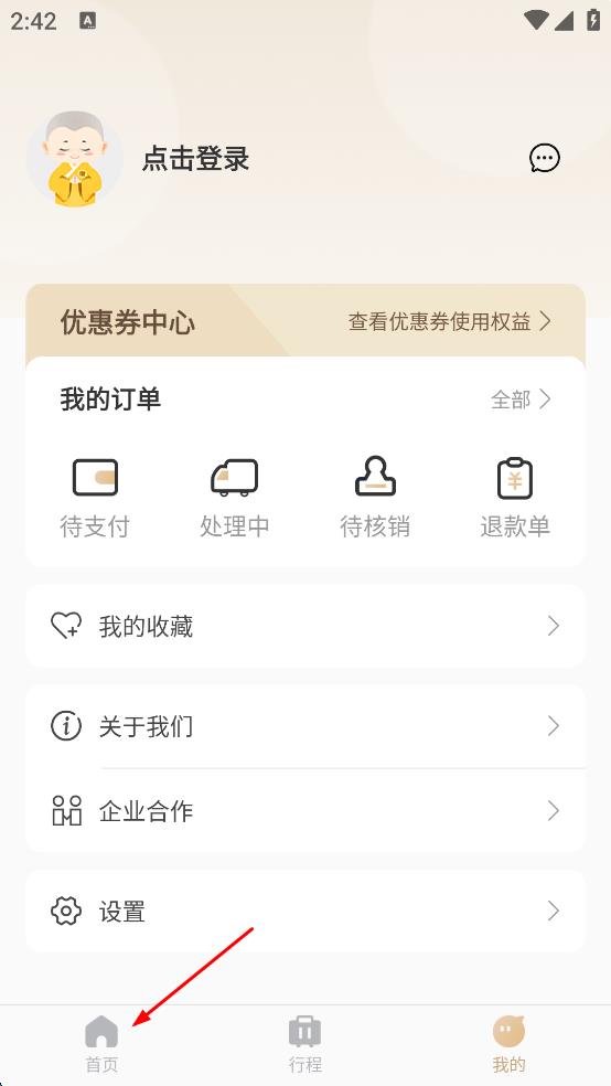 2、在軟件主界面,點擊底部的“首頁”選項,進入首頁頁面。