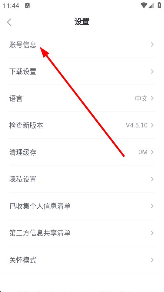 3、在設(shè)置界面里,點(diǎn)擊賬號(hào)信息選項(xiàng)進(jìn)入賬號(hào)信息頁(yè)面。