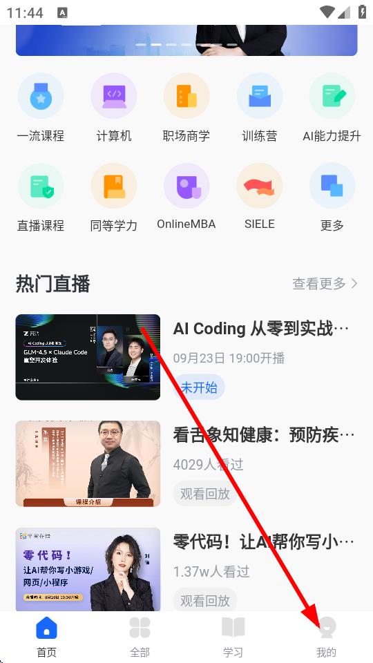 1、打開學(xué)堂在線APP,點(diǎn)擊底部導(dǎo)航欄中的我的進(jìn)入個(gè)人頁(yè)面。