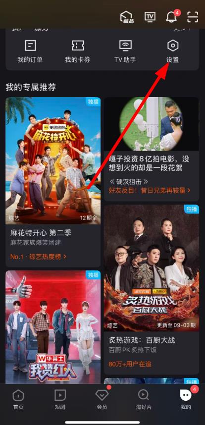 1、打開優(yōu)酷APP,點擊底部導航欄我的,再點擊設置圖標。