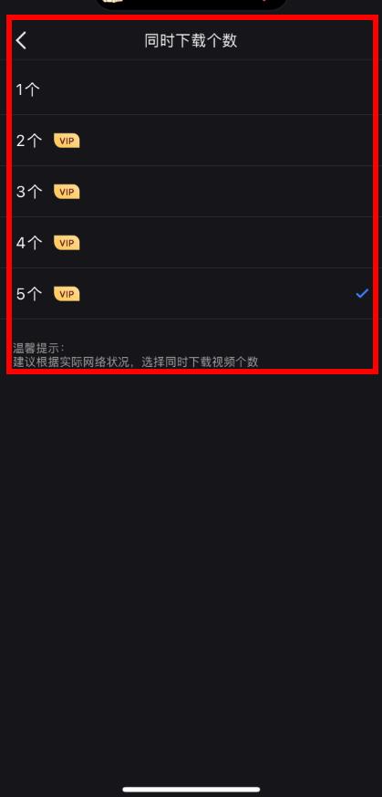 3、進入同時下載個數(shù)頁面后,選擇想要設置的下載個數(shù)即可完成設置。