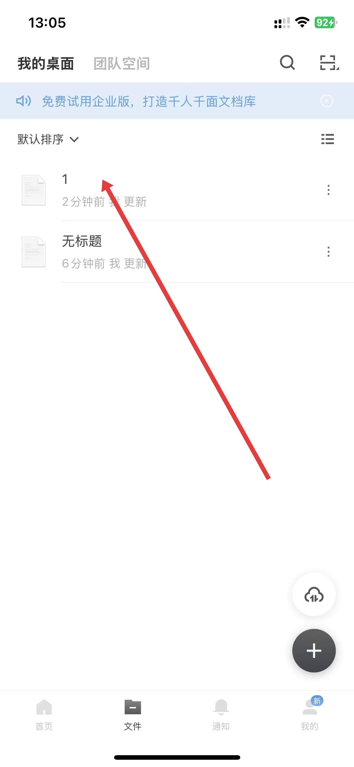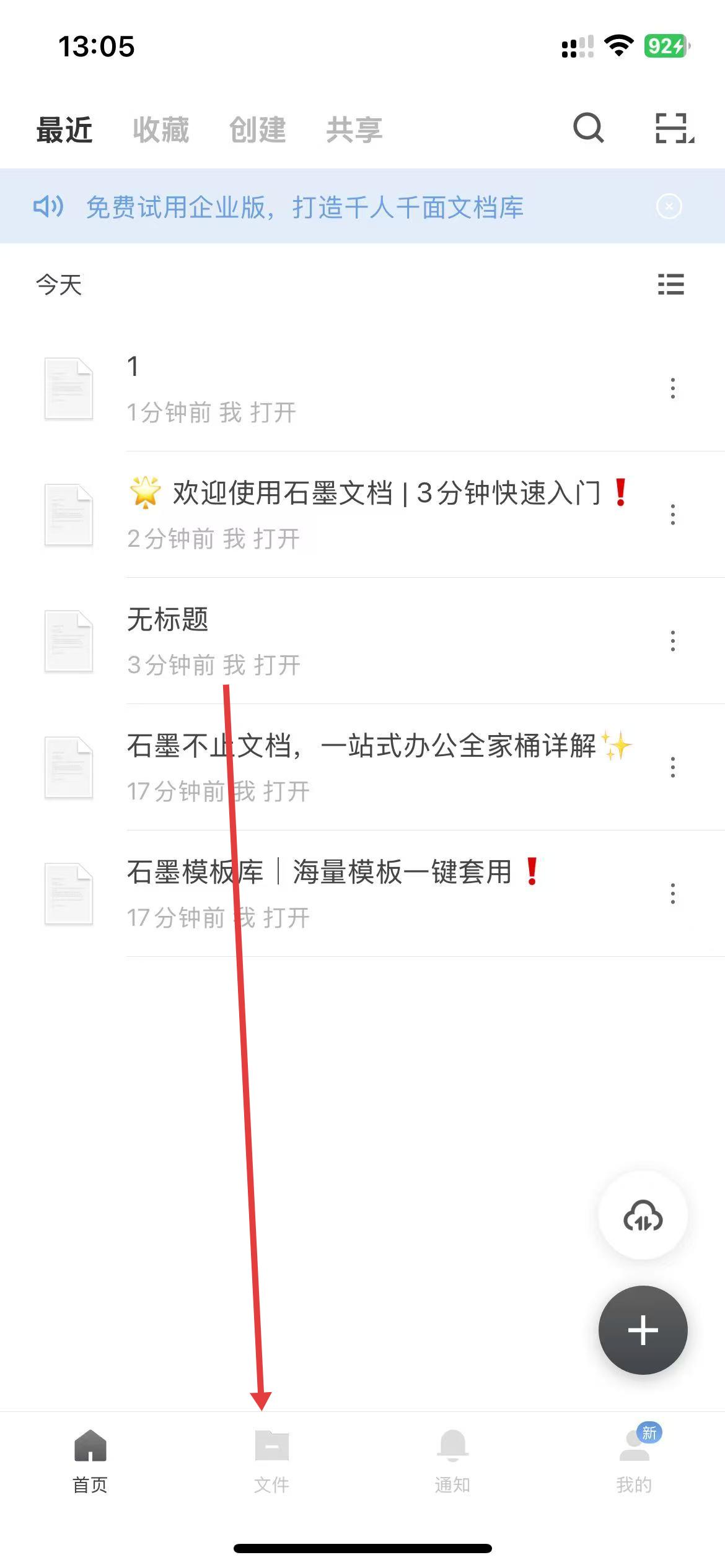 1、點(diǎn)擊底部導(dǎo)航欄中的文件選項(xiàng),進(jìn)入文檔列表界面。