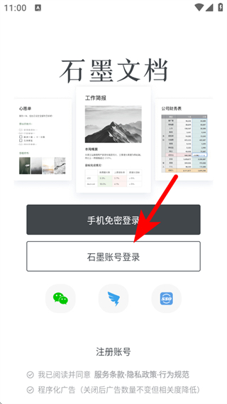 1、打開(kāi)石墨文檔,點(diǎn)擊石墨賬號(hào)登錄,進(jìn)入賬號(hào)密碼登錄界面。