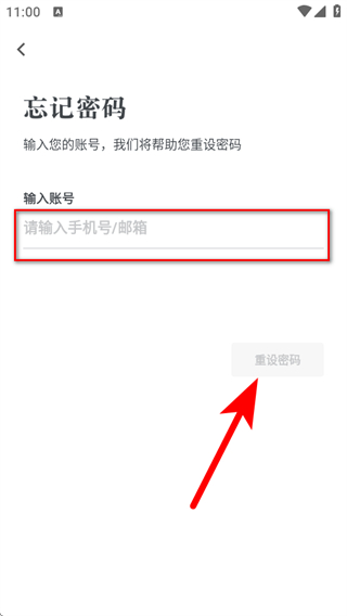 3、在忘記密碼頁(yè)面,輸入賬號(hào)后點(diǎn)擊重設(shè)密碼,進(jìn)入驗(yàn)證碼輸入環(huán)節(jié)。