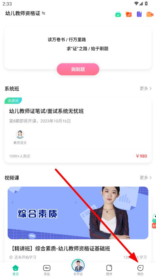 1、在對啊課堂首頁,點擊右下角我的選項,進入個人界面。
