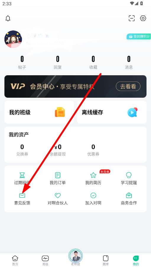2、在個人界面中,找到并點擊意見反饋選項,進入意見反饋頁面。