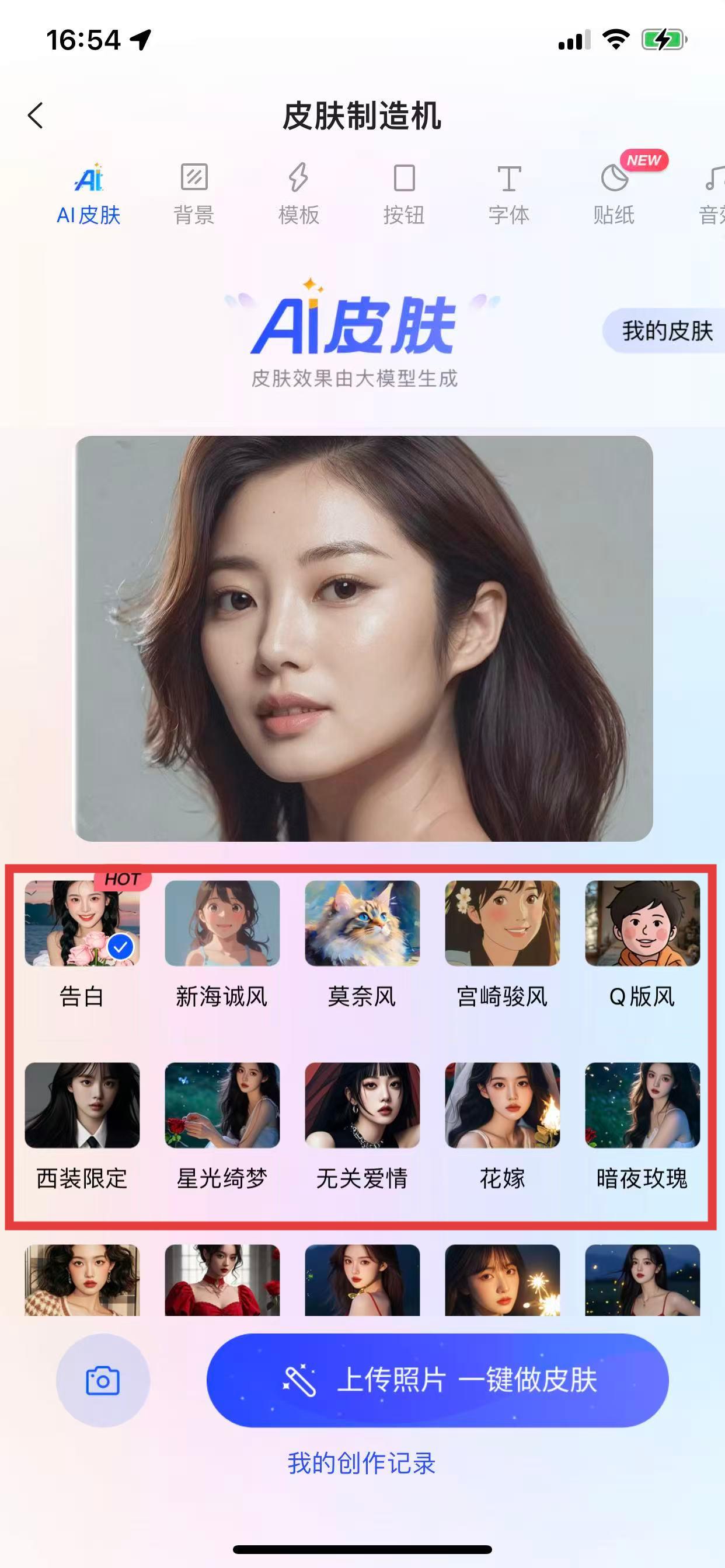 2、這里有多種風(fēng)格預(yù)設(shè),如告白、新海誠(chéng)風(fēng)等,可以選擇喜歡的風(fēng)格模板。