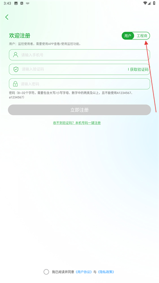 2、在注冊(cè)的頁(yè)面內(nèi),點(diǎn)擊用戶旁工程師的按鈕。