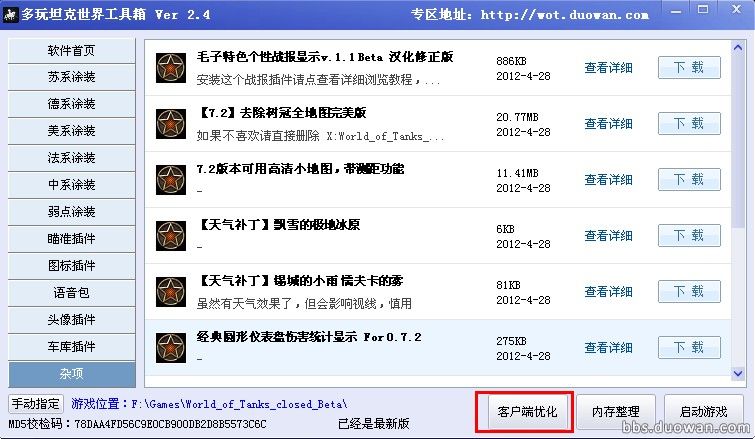 (重要)之前使用過其他優(yōu)化工具的請還原,否則不能正常的使用優(yōu)化工具,包子親測,干凈的客戶端是完全可以使用優(yōu)化工具的!