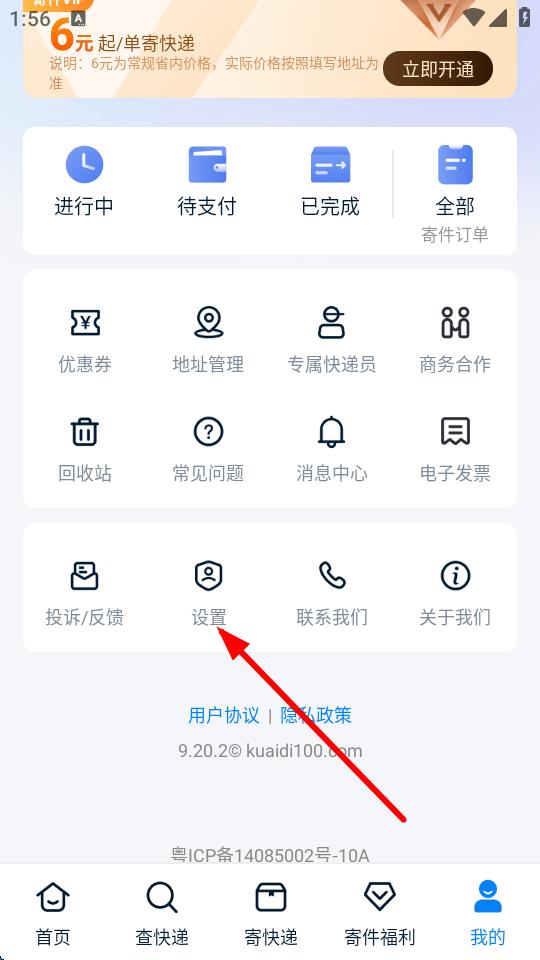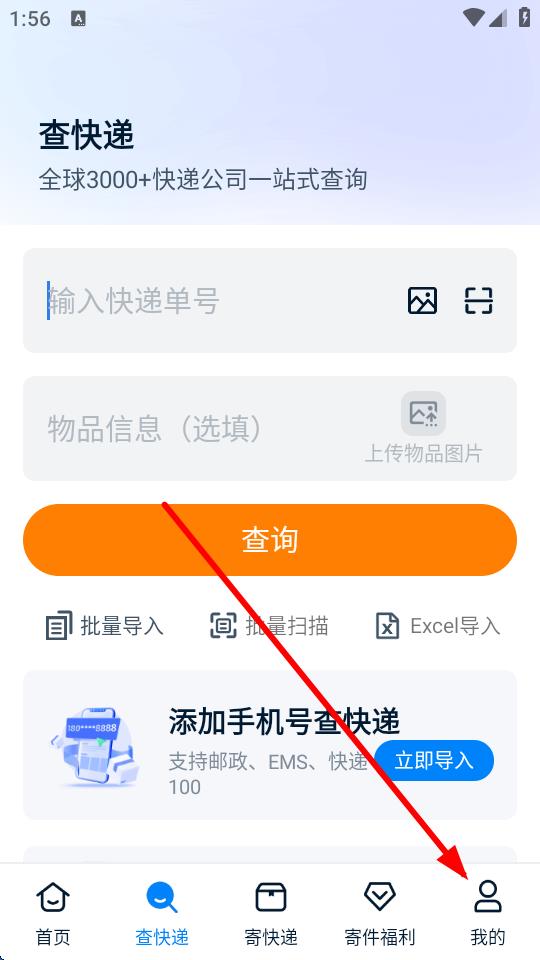 1、打開快遞100應(yīng)用,點(diǎn)擊底部導(dǎo)航欄最右側(cè)的我的選項(xiàng)。