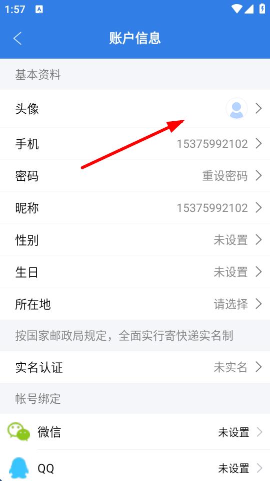 4、在賬戶信息頁面里,點(diǎn)擊頭像右側(cè)的箭頭,進(jìn)入頭像修改界面,按照提示選擇本地圖片上傳,即可完成頭像修改。