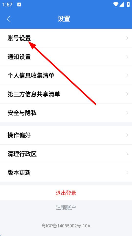 3、進(jìn)入設(shè)置頁面后,點(diǎn)擊賬號設(shè)置選項(xiàng)。