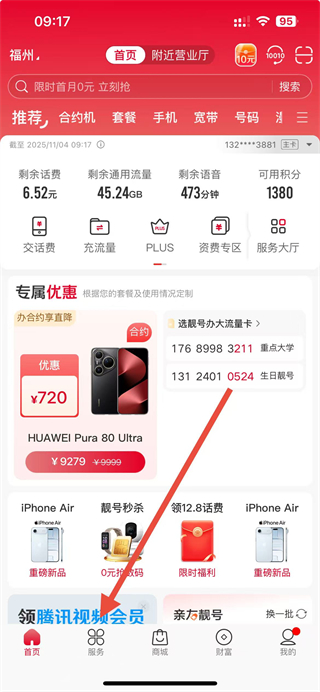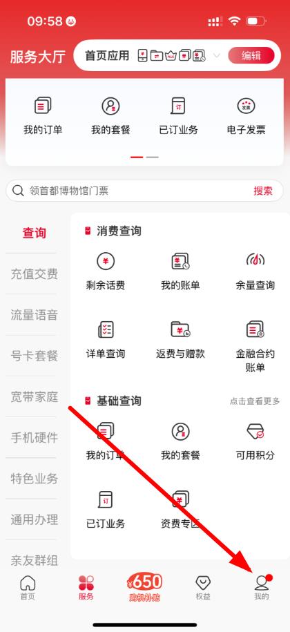 1、打開中國聯(lián)通APP,點擊底部服務(wù)選項進入服務(wù)大廳。
