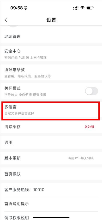 3、在設(shè)置頁面里,找到并點擊多語言選項,進入語言設(shè)置界面。