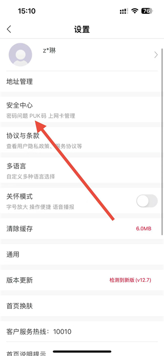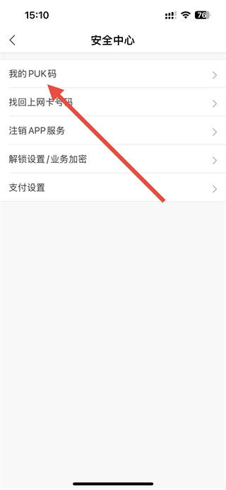 4、在安全中心頁面,點(diǎn)擊我的PUK碼選項即可查看PUK碼。