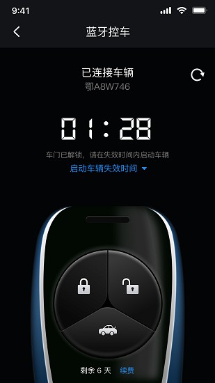 4、藍牙鑰匙功能,用戶可以通過藍牙來連接自己的鑰匙,遠程啟動車輛。