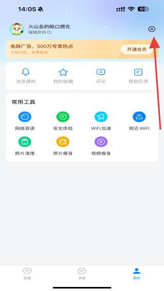 1、啟動App,點擊底部我的圖標,進入個人中心后,點擊右上角設(shè)置的功能圖標。