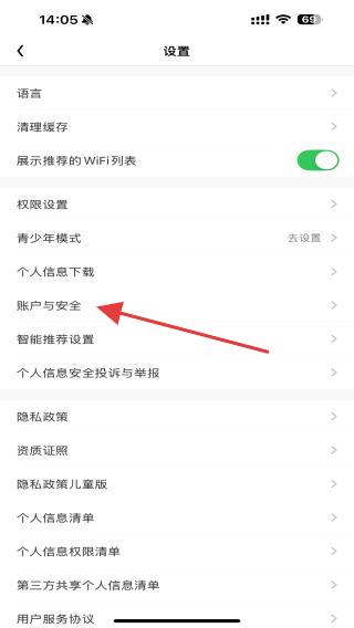 2、在設(shè)置的頁面中,找到并點擊賬號與安全的選項。