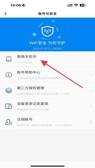 3、在賬號與安全的頁面中,用戶需點擊更換手機號選項,即可更換手機號。
