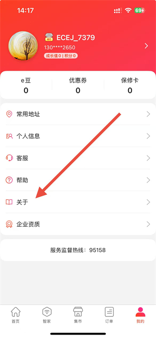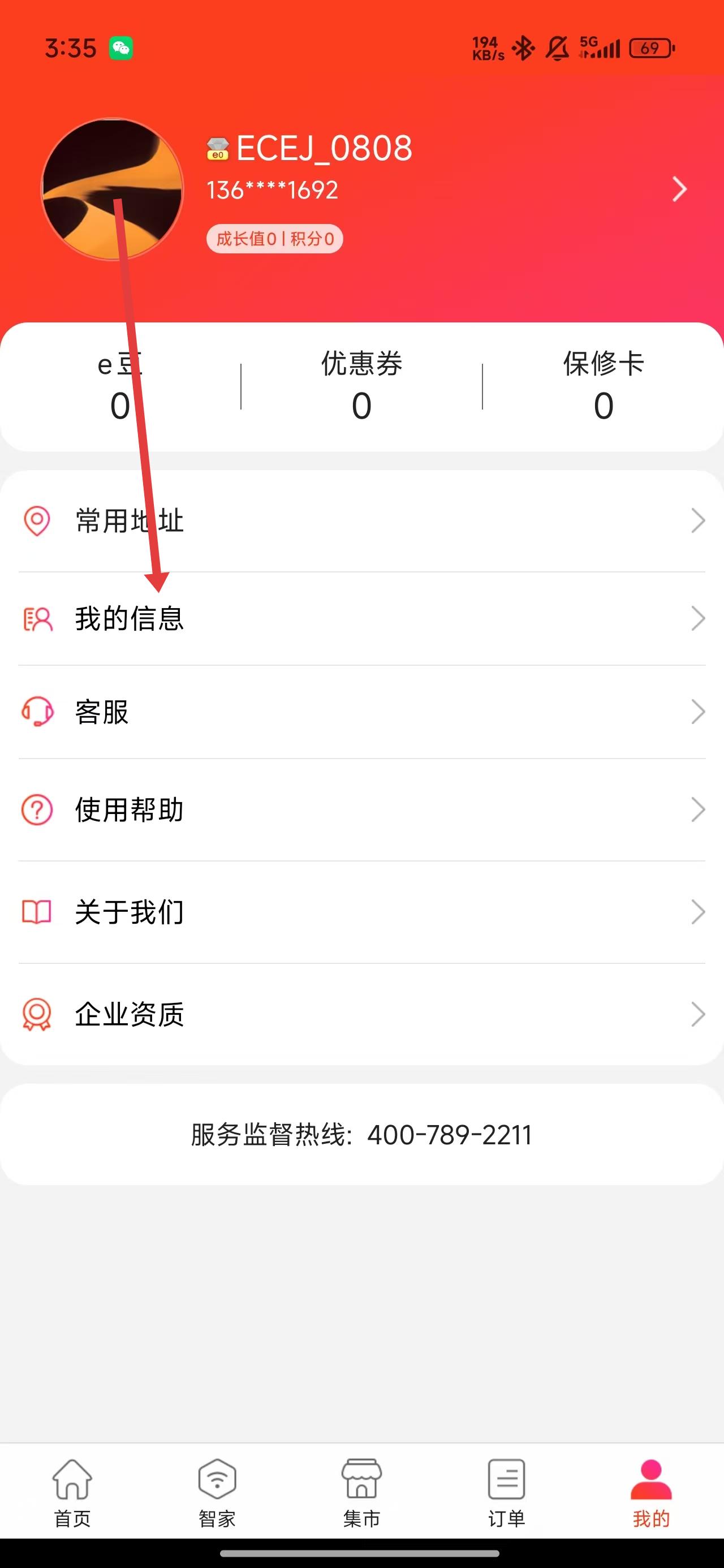 1、在e城e家我的主頁中,點擊我的信息選項可進入查看或更改信息。