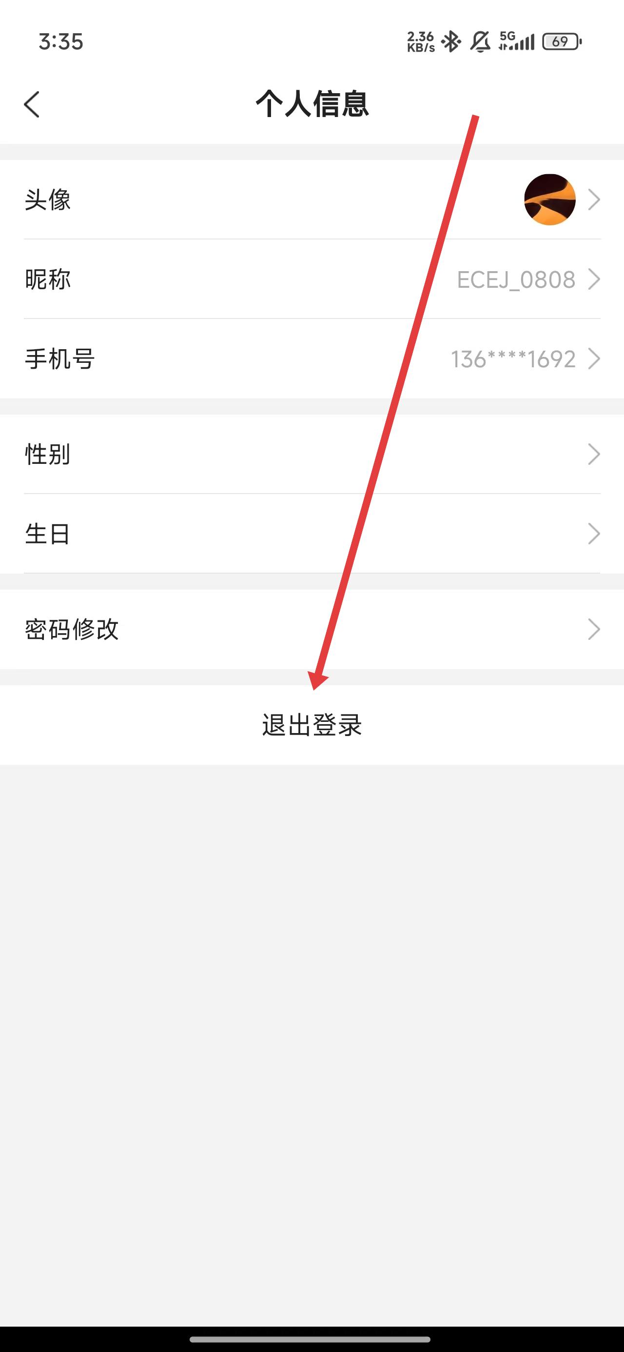 2、在進入到個人信息后,可以點擊退出登錄進行切換賬號的操作。