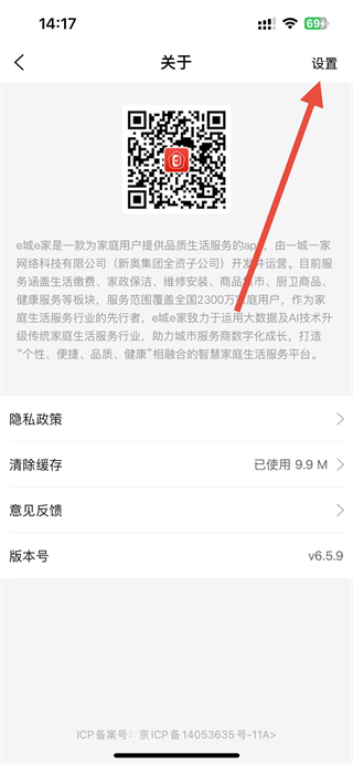2、在關(guān)于界面,點擊右上角設(shè)置,可進入設(shè)置頁面進行相關(guān)操作。