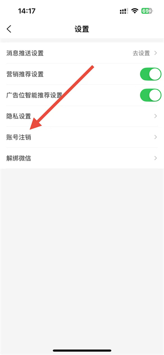 3、在設(shè)置頁面中找到賬號注銷選項并點擊,進入賬號注銷說明界面。