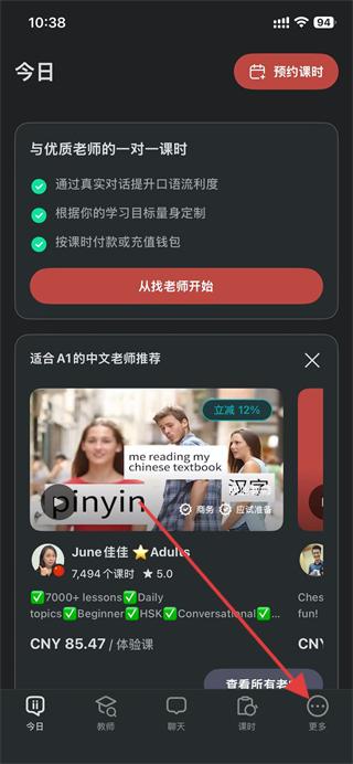 1、打開italki,點(diǎn)擊底部導(dǎo)航欄更多選項(xiàng)。