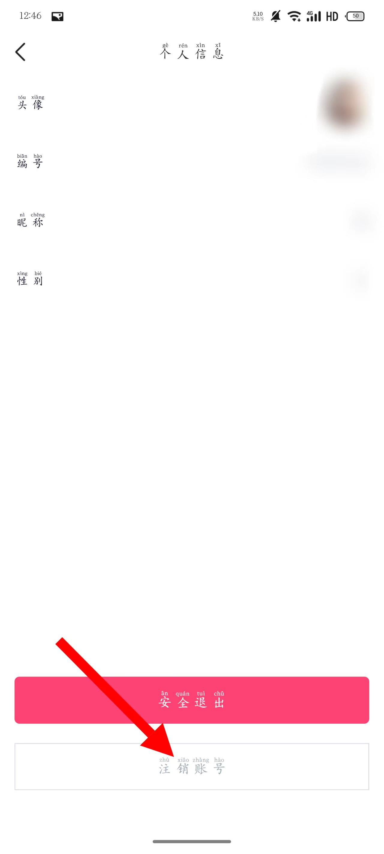 3、在個人信息頁面下滑,找到注銷賬號按鈕并點擊。